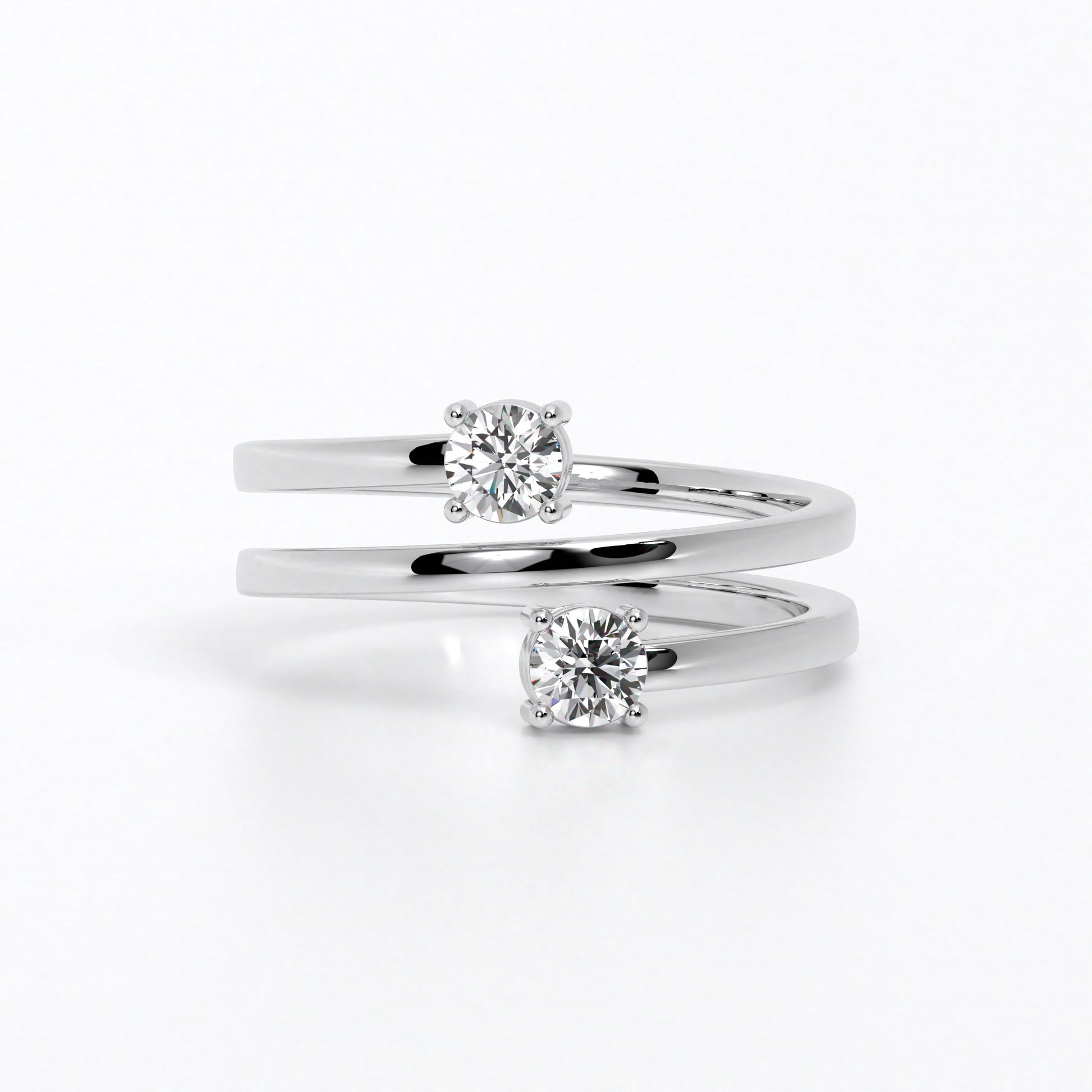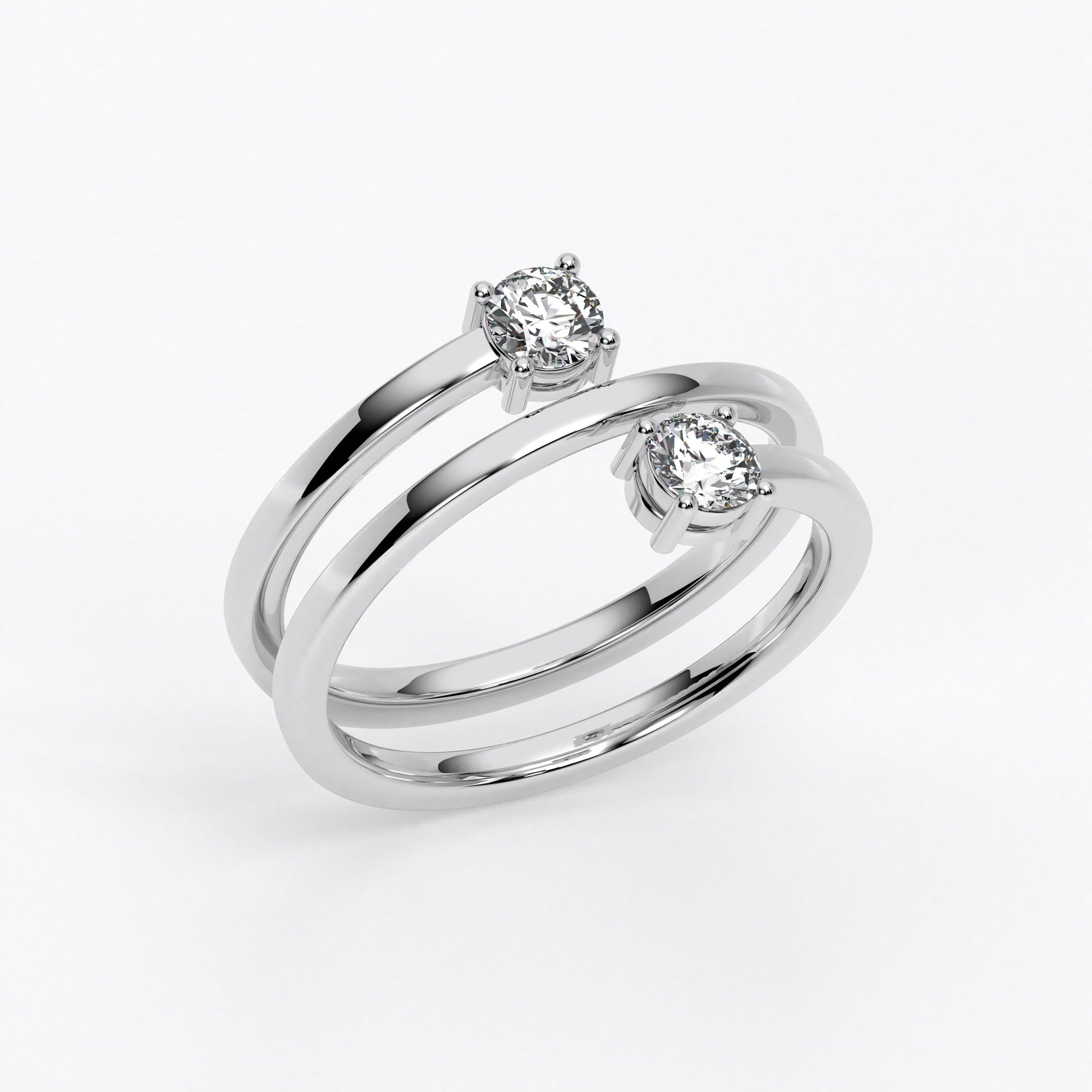 Anillo doble aro en oro blanco de 18 K con dos diamantes talla brillante