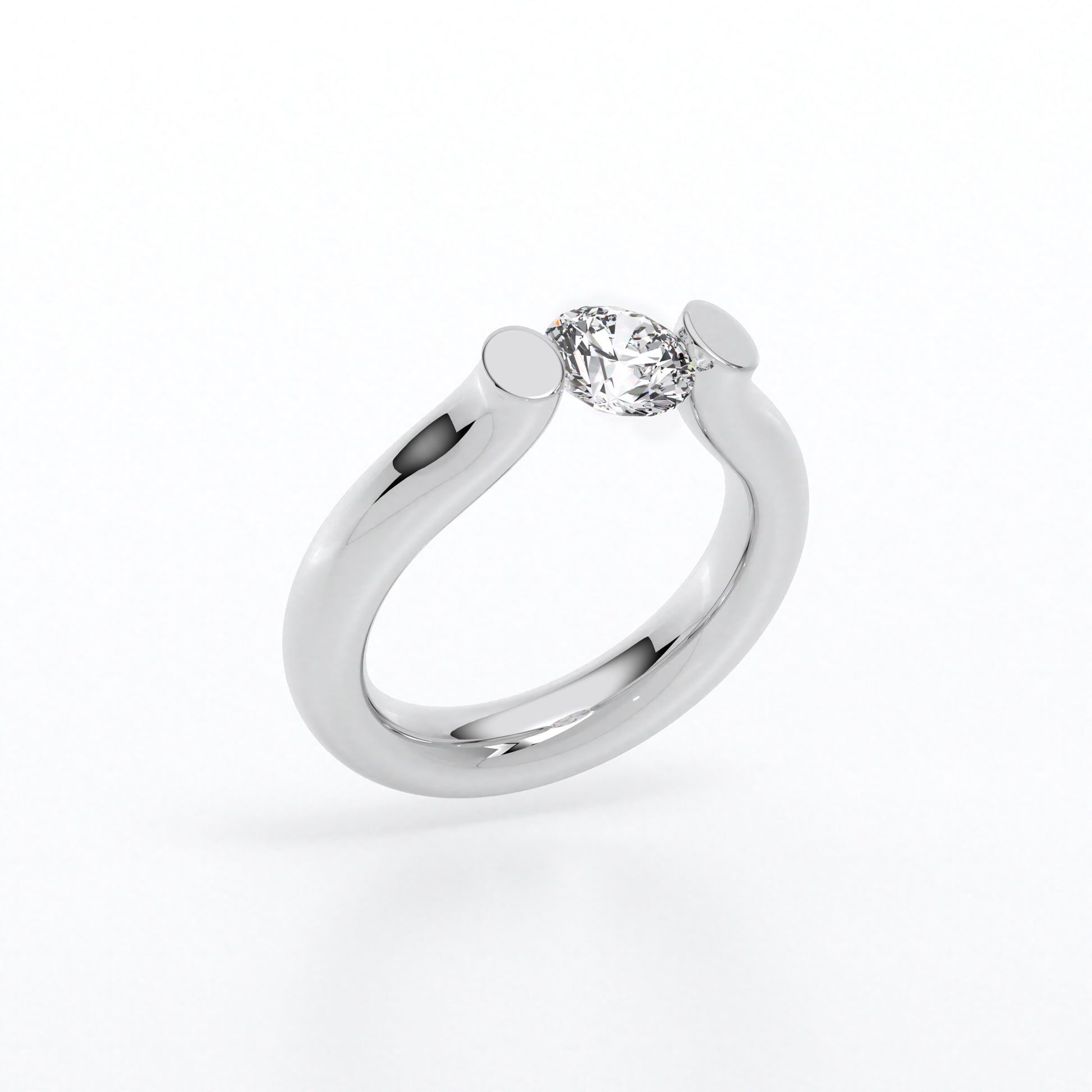 Anillo de oro blanco de 18k, montura de tensión, diamante natural talla brillante