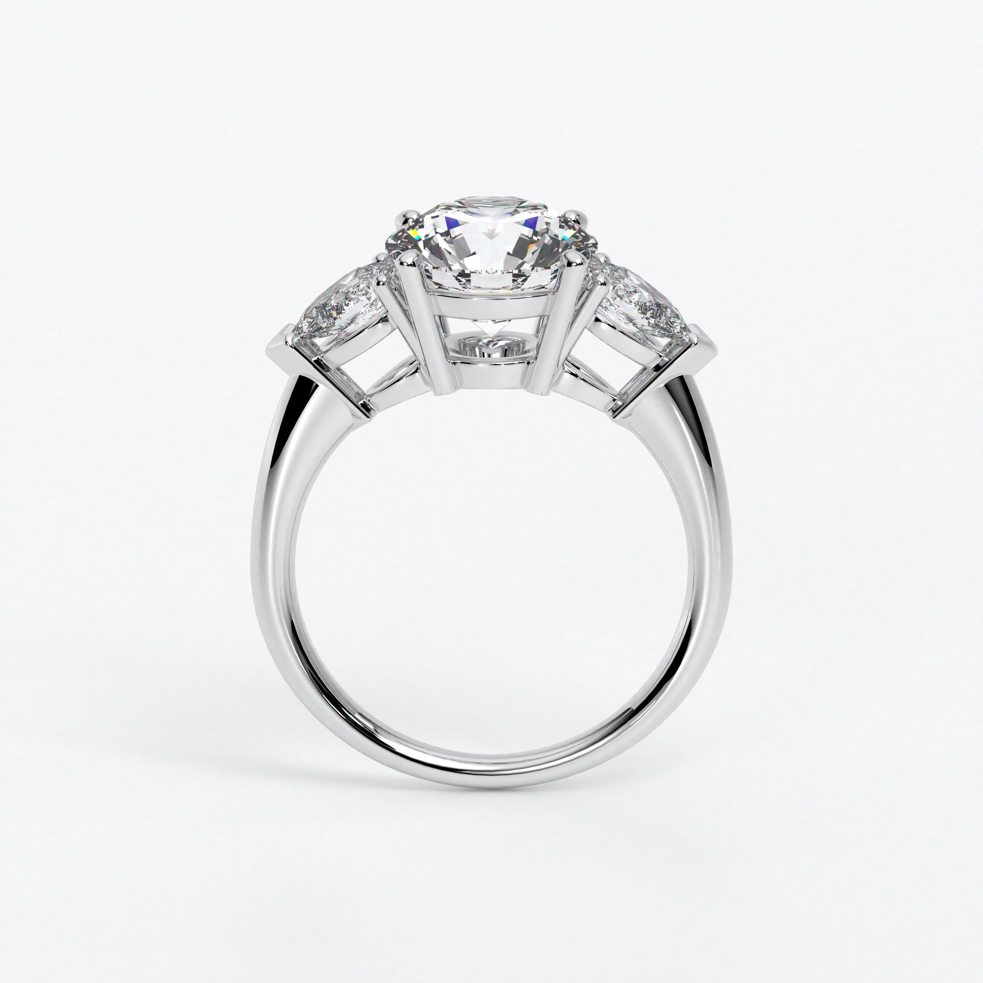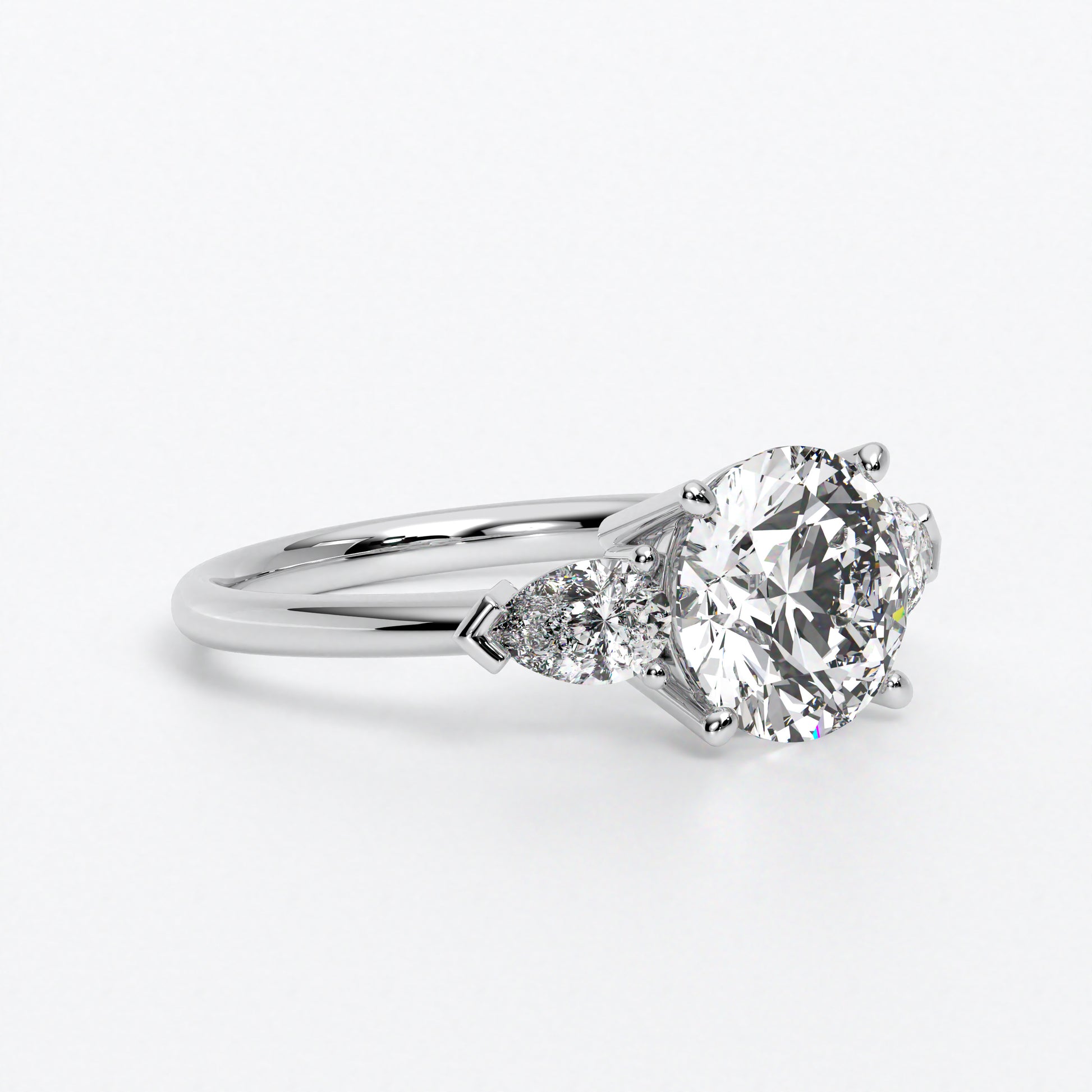 Anillo de oro blanco de 18K con diamante central en talla brillante, 2 diamantes en talla pera