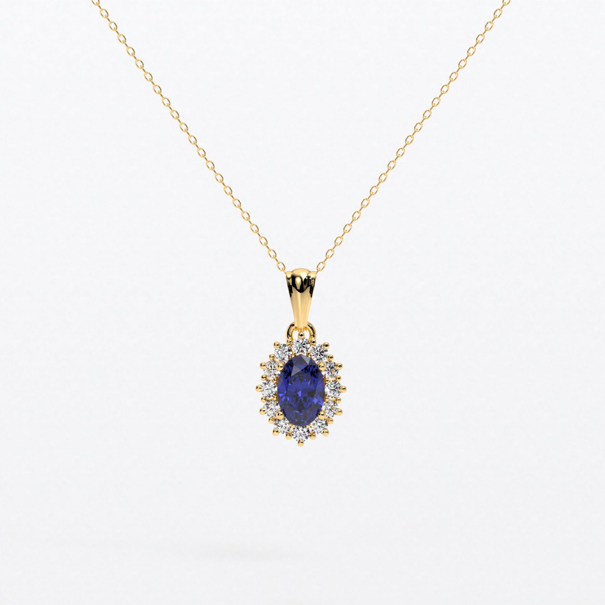 Colgante rosetón con zafiro azul natural y brillantes en oro de 18K