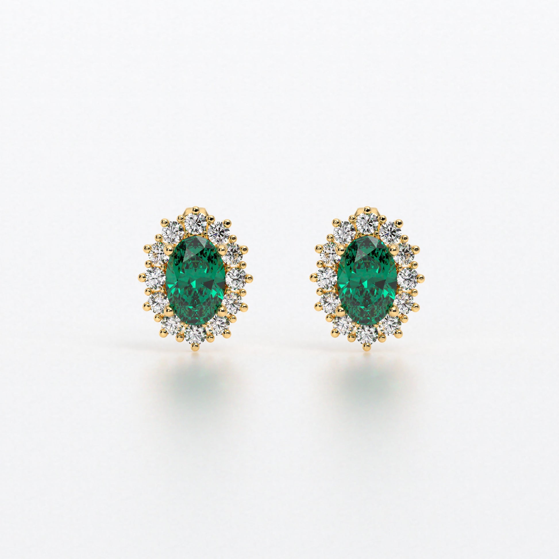 Pendientes rosetón oro blanco de 18K con esmeralda natural y diamantes