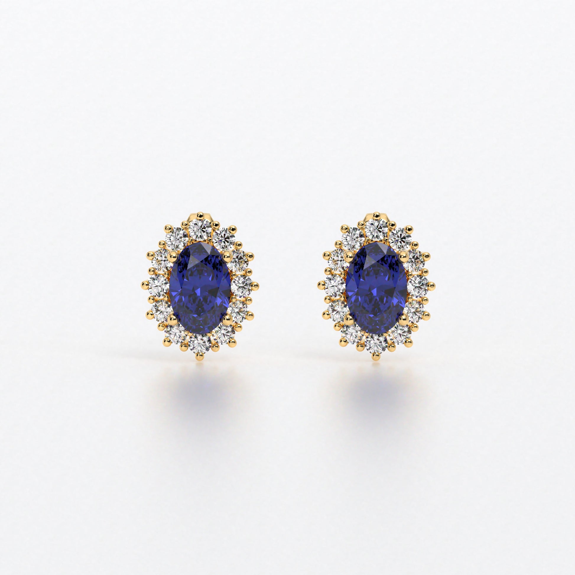 Pendientes rosetón oro blanco de 18K con zafiro azul natural y diamantes